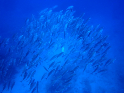 ツムブリ、ギンガメアジ、カツオなど群れていて楽しく潜れましたね