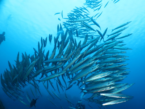 ケラマダイビングで見られたカマスの群れ!