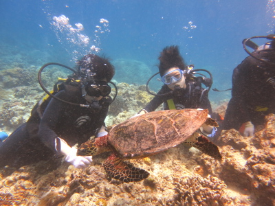PR カメ観察体験ダイビングツアーage-13331″ /> カメ保障ダイビングでカメを見たお客様の様子です[/caption]