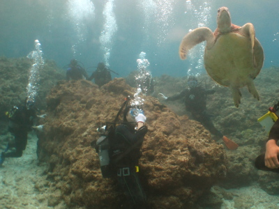 PR カメ観察体験ダイビングツアー保障付き)¥11,800 カメが見れるまで最大3ダイブを同料金でご提供いたします。必ず、見せます!!
