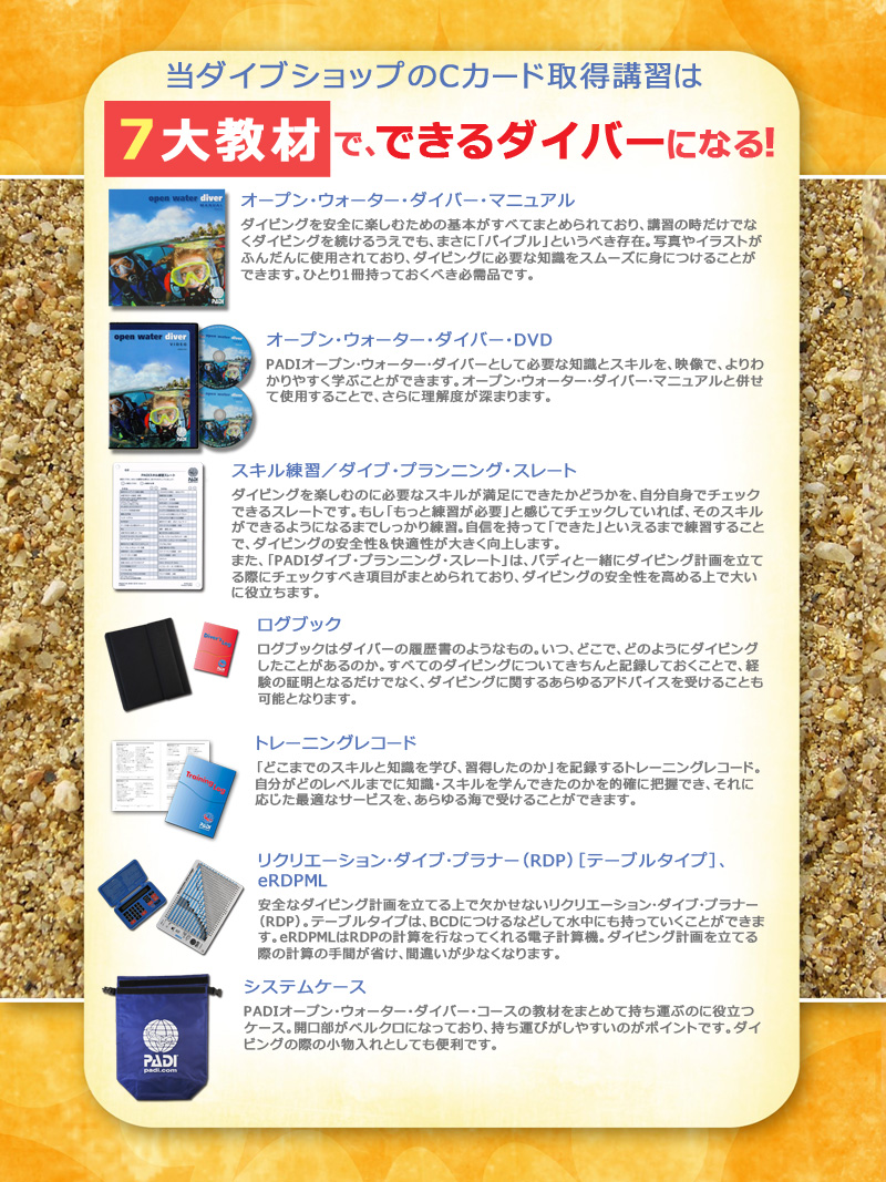 また、世界初のインターネットを使ったオンライン・トレーニング「PADI eラーニング」も実施しています。